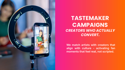 We help build and deliver cohesive global campaigns that land locally, connecting artists with audiences worldwide through creative storytelling, cultural insight, and strategic precision.
